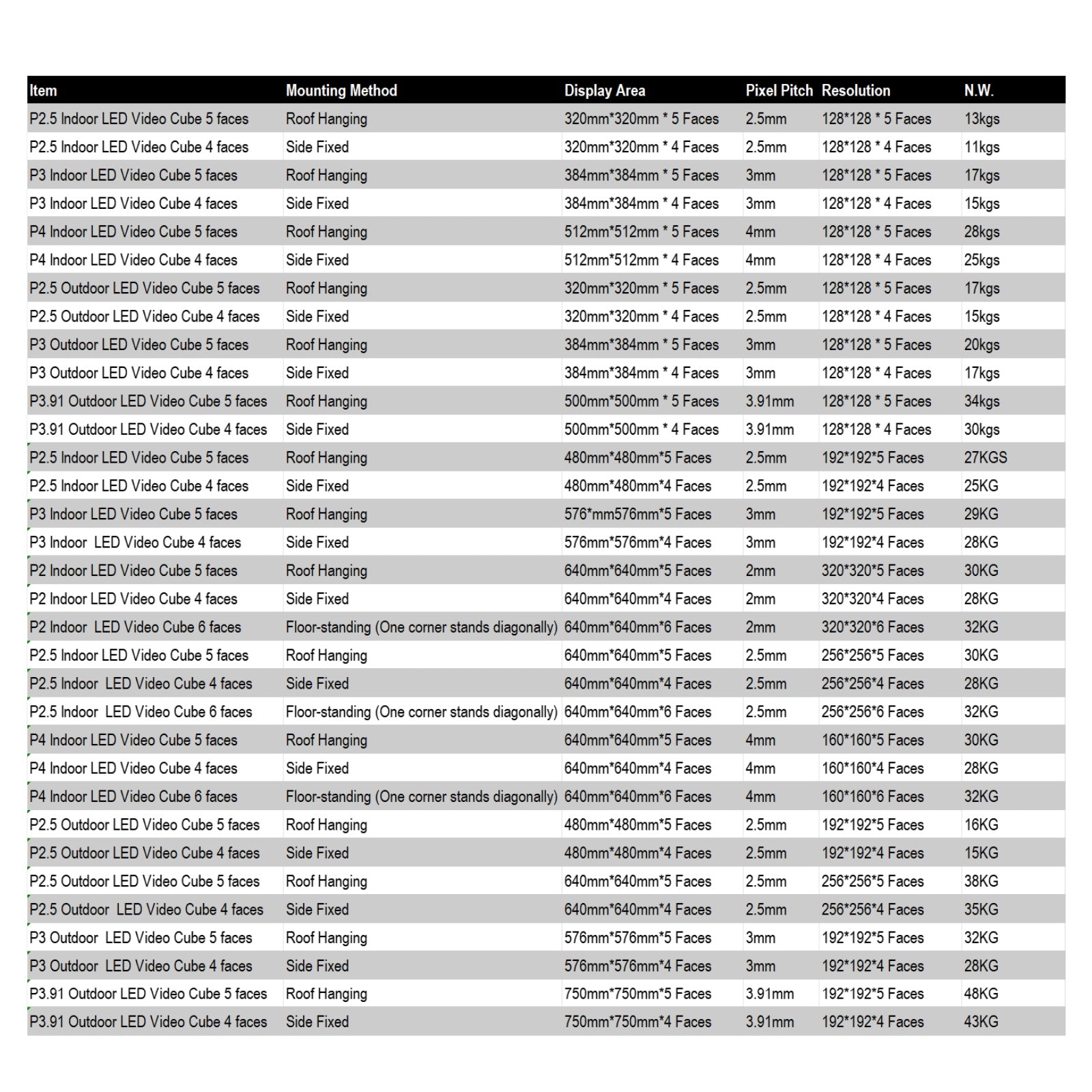 With 4faces or 5faces cubic display screen, also can be customized with only 3faces, or make into cubiod, or with several pieces cube stack on each other into a cubic column.