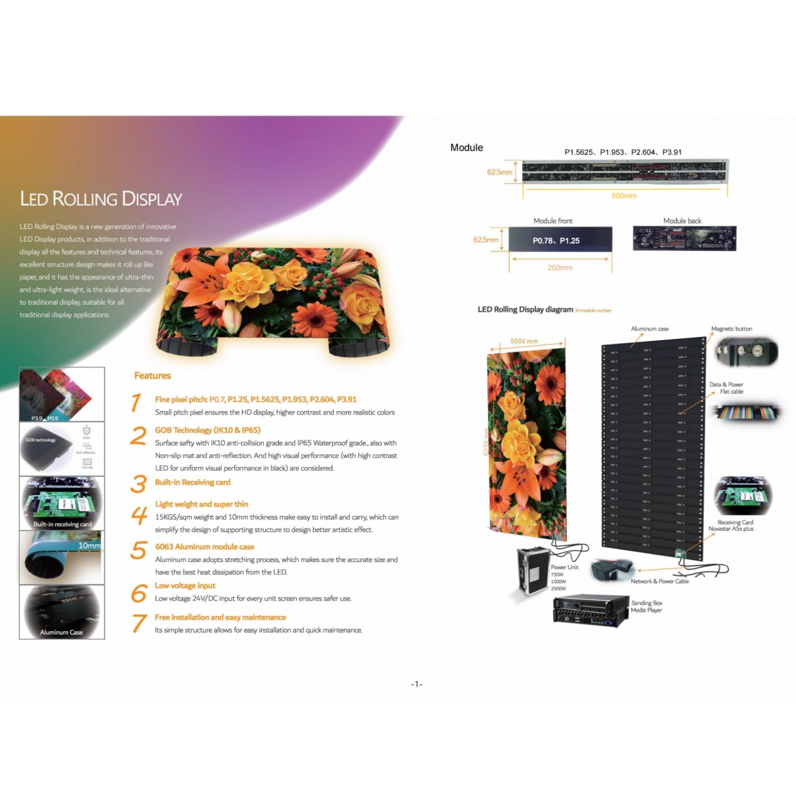 With an electric motor, the LED display can automatically roll up and down into a scroll, which is suitable for occasions where the screen needs to be hidden when not in use.
