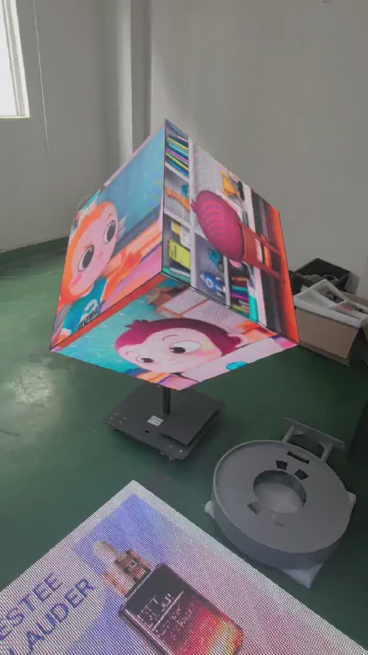 6 Faces (640x640 mm) Cube LED Display P2.5 (2.5mm Pixel Pitch) Indoor Inclined Floor-Standing Cubic Screen